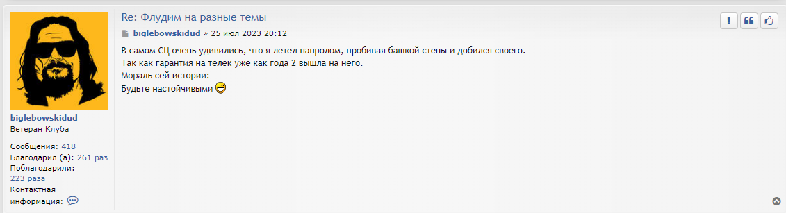 А для "официалов" (собранных в РФ для РФ, а также для продажи на территории РБ, Украины, Молдовы и Казахстана) действует официальная гарантия от производителя в 1 год + 1 год от него же бесплатного (на работу и з/части) постгарантийного сервисного обслуживания (кроме предназначенных для Казахстана). И все это работает (пока? ), свежие примеры в Гарантия на телевизоры LG