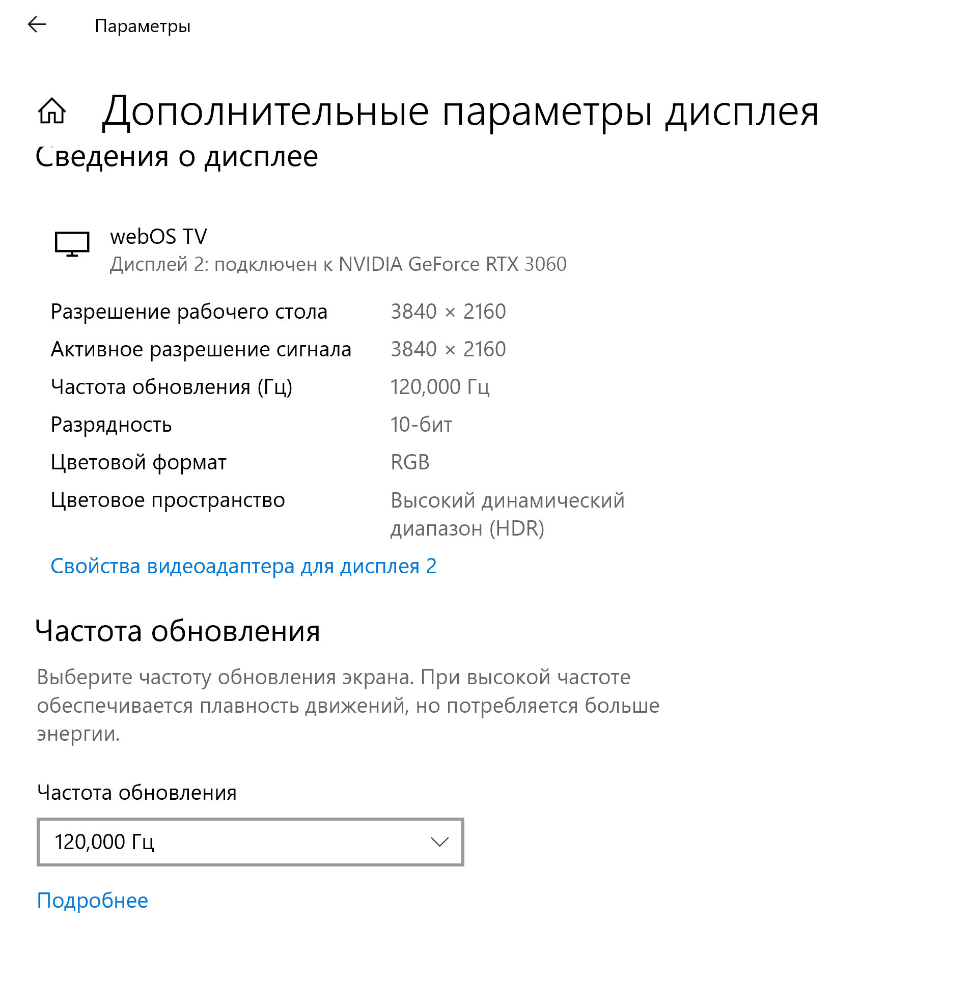Обозреваемый телевизор поддерживает частоту обновления 120 Гц при максимальном разрешении, когда ещё можно включить HDR с глубиной цвета 10 бит. Узнать о том, что отображаемый контент поддерживает HDR10 и Dolby Vision можно по значкам, на какое-то время появляющимся в правом верхнем углу дисплея.