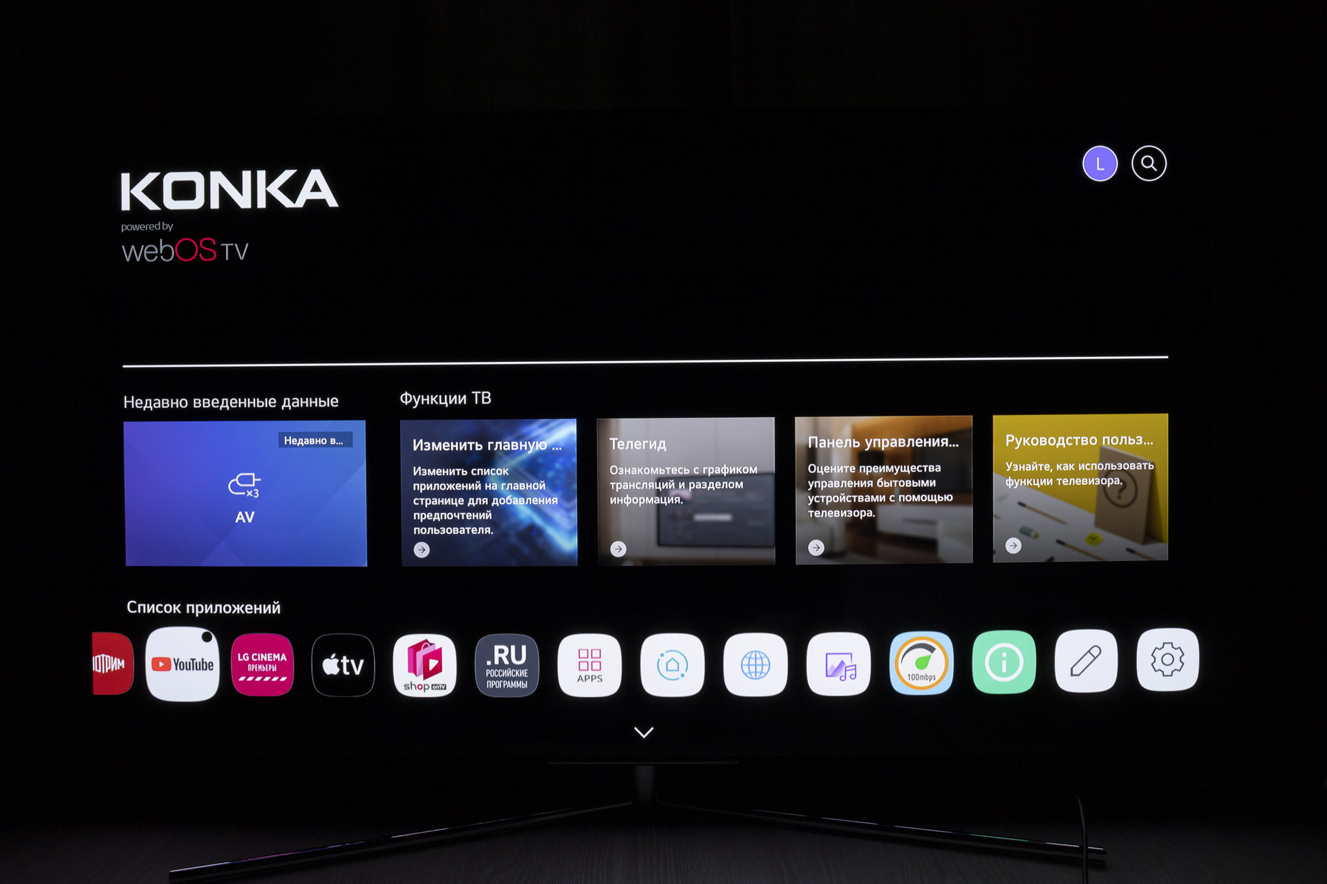 WebOS должна быть хорошо знакома тем, кто пользовался телевизорами LG, хотя встретить эту операционную систему можно и в устройствах некоторых других брендов. На мой взгляд, основные её плюсы заключаются в простоте использования, приятном оформлении и стабильной работе. При этом нельзя сказать, что ничего не тормозит во время использования — Konka A65 может быть задумчивым при взаимодействии с различным софтом или при навигации по меню настроек. Есть много популярных приложений и свой магазин с каталогом, но выбор далёк от того, что может предложить Android OS. К примеру, на WebOS, по сути, отсутствует нормальный файловый менеджер, хотя вы можете просматривать большинство популярных форматов с внешних носителей через галерею.