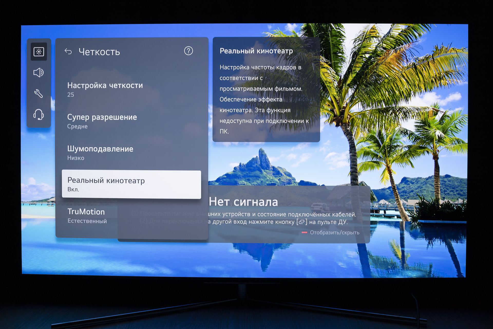 Уплавнялка изображения MEMC способствует комфортному просмотру видео с низким количеством кадров за счёт их дорисовки. Здесь сразу несколько ручных настроек и профилей вроде «Кинематографического движения», «Естественного» и «Плавного движения».