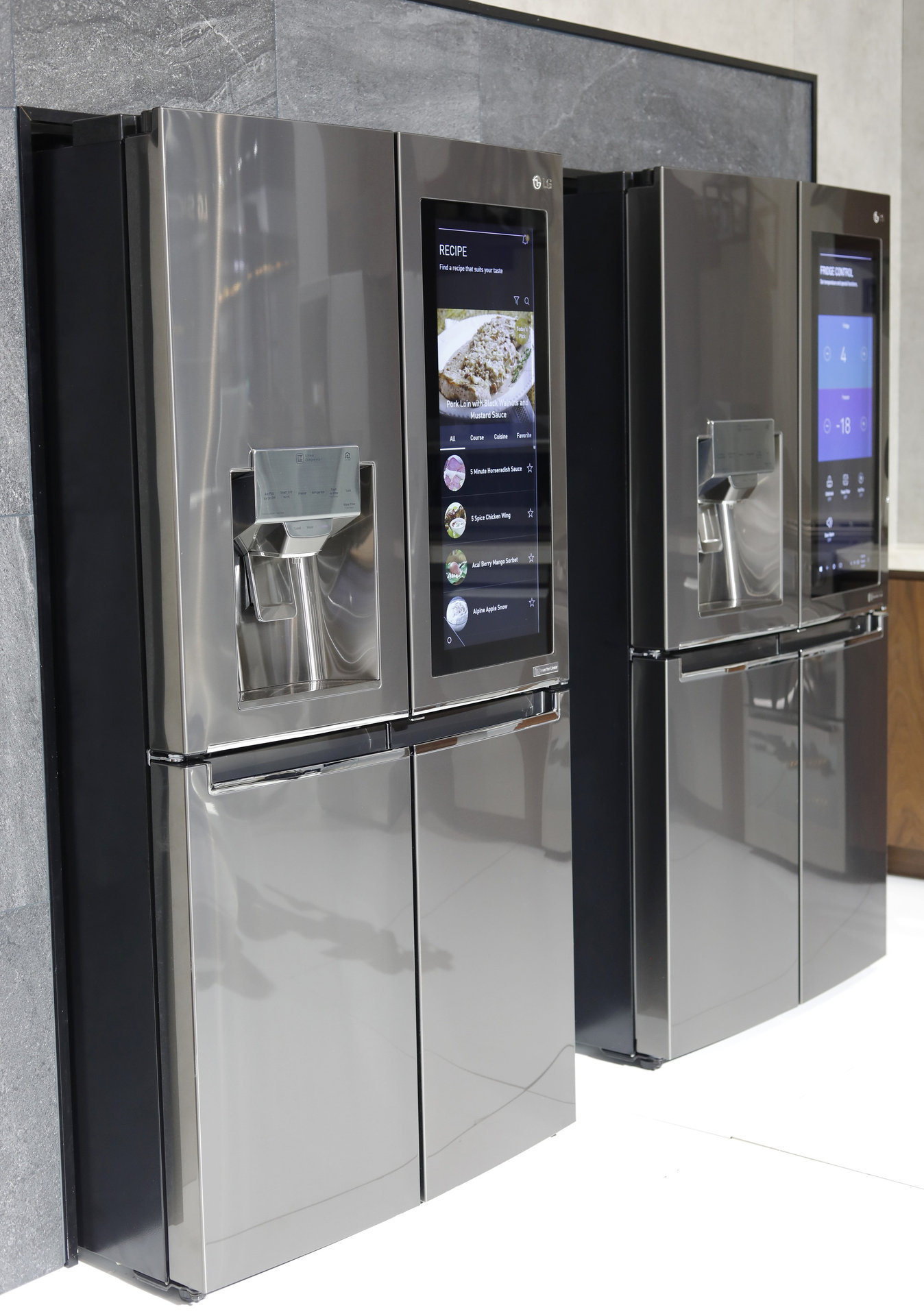 Холодильник, входящий во флагманскую линейку Door-in-Door, оснащен 29-дюймовым сенсорным LCD-дисплеем. Благодаря функции InstaView с помощью двойного нажатия на экран он мгновенно становится прозрачным. Это дает возможность пользователю заглянуть внутрь холодильника, не открывая дверцу.