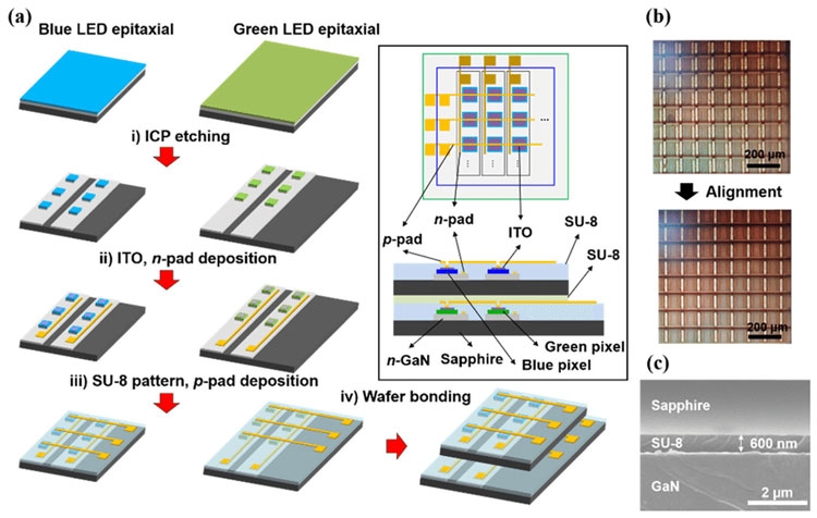 Технология microLED пытается решить именно эту проблему массового воспроизводства. В краткосрочной перспективе, по-видимому, закрепление массивов светодиодов на пластине является наиболее жизнеспособным процессом. Однако в настоящее время он подходит только для панелей с низкой концентрацией пикселей, таких как дисплей, пусть даже крупноформатный, а не матрица смартфона.