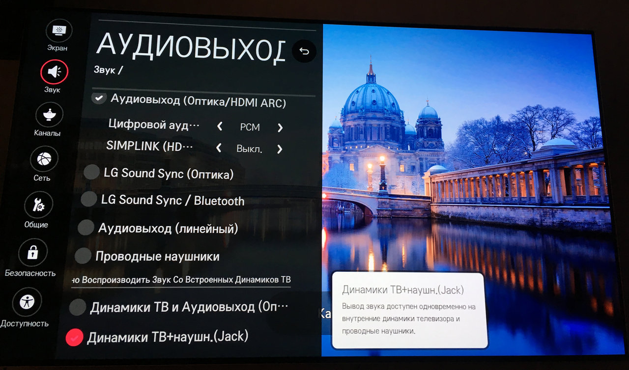 5. Одновременное воспроизведение звука через встроенные динамики телевизора и внешнее аудио-устройство