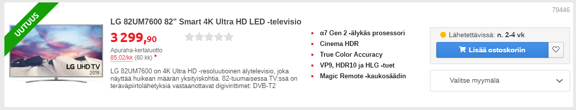 Модель UM7600 входит в седьмую серию телевизоров LG 2019 года с поддержкой разрешения 4K.