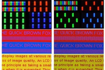 As you may have guessed, sub-pixel rending does have drawbacks, with the main one being lower effective resolution when the wide viewing angle system is active. When examining the pixel structure more closely, we found that the LCD panel has a gate pattern that negatively affects picture details.