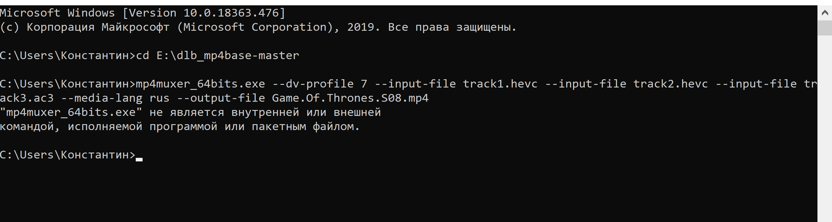 Вам нужно перейти в ту папку, где у Вас находится скачанное приложение mp4muxer_64bits.exe и запустить его оттуда.