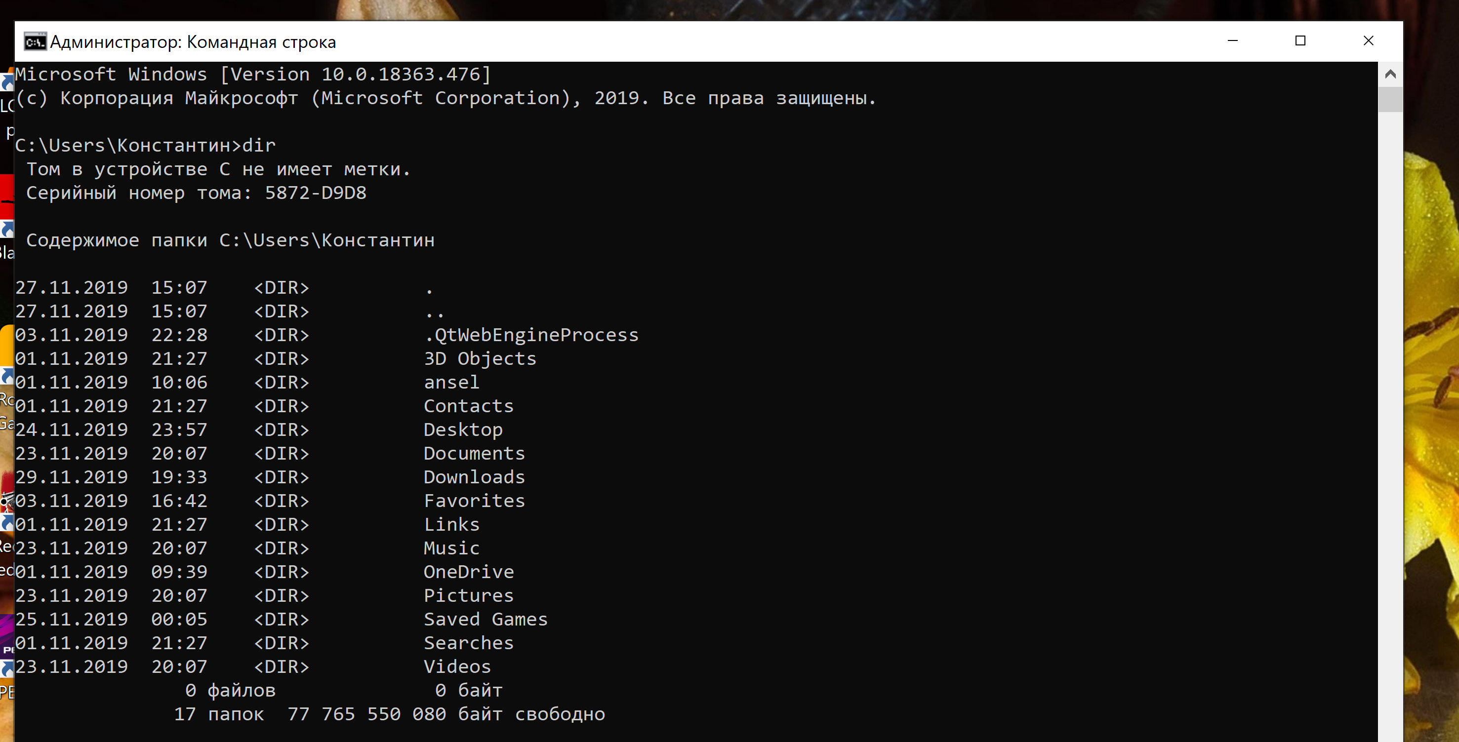 Перейти в папку с приложением, набрать dir в командной строке, нажать Ввод.