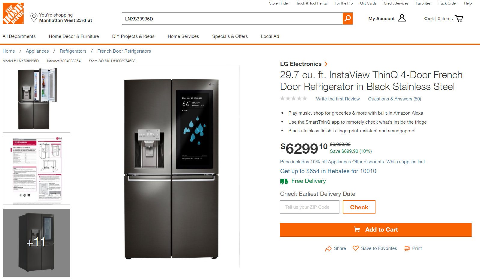 Оказывается купить умный холодильник уже можно в американском интернет-магазине HomeDepot: https://www.homedepot.com/p/LG-Electron ... /304083264. Правда зайти получилось только расширением Browsec для Chrome с американским IP.