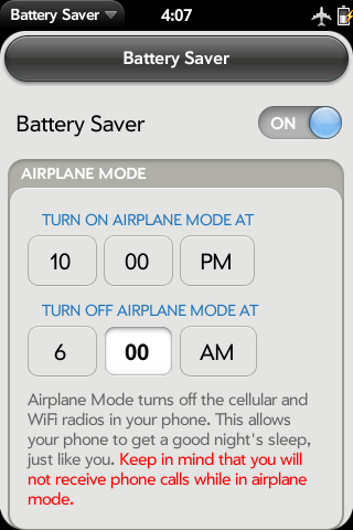 Приложение Battery Saver каждую ночь в запланированное время автоматически переводит телефон в автономный режим (Airplane mode).