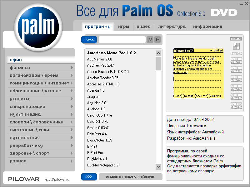 p.s. Хорошая раздача с софтом для палмов (торрент PalmOS скачать):