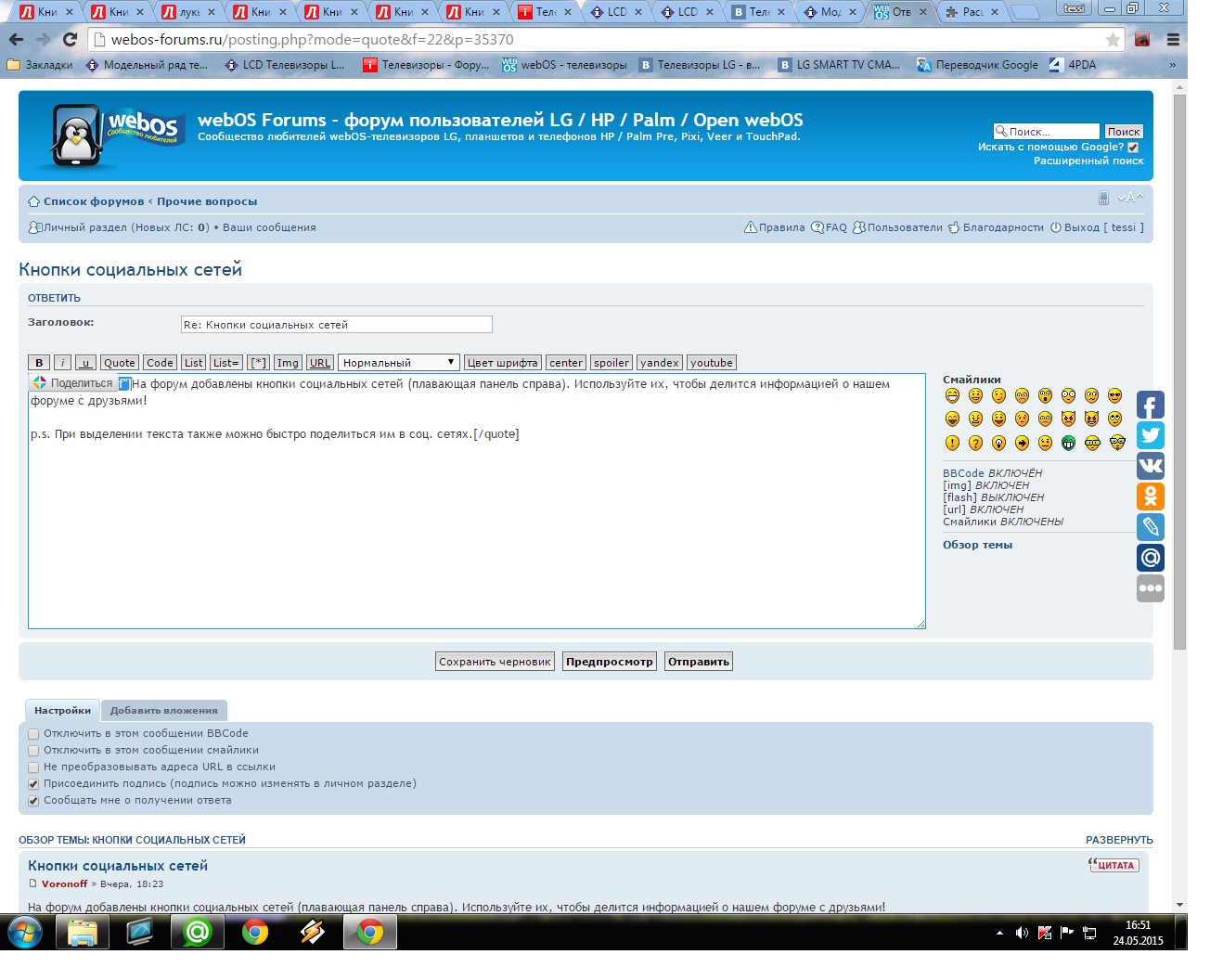 На форум добавлены кнопки социальных сетей (плавающая панель справа). Используйте их, чтобы делиться информацией о нашем форуме с друзьями!