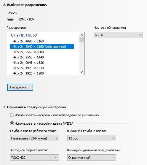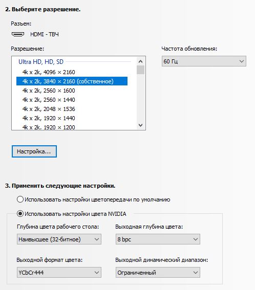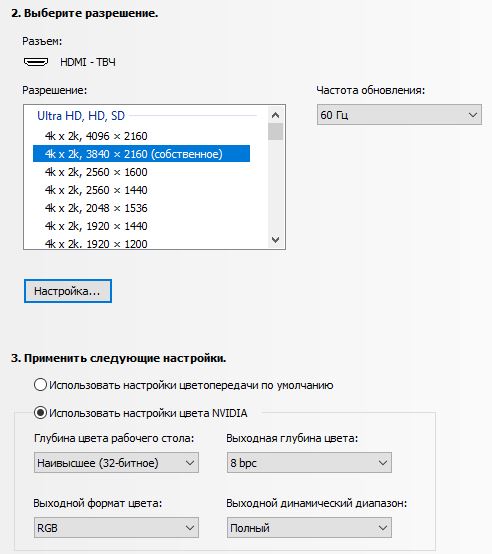 Почему то нет выбора разрешения больше 1080 для телека. С прошлой видюхой было.