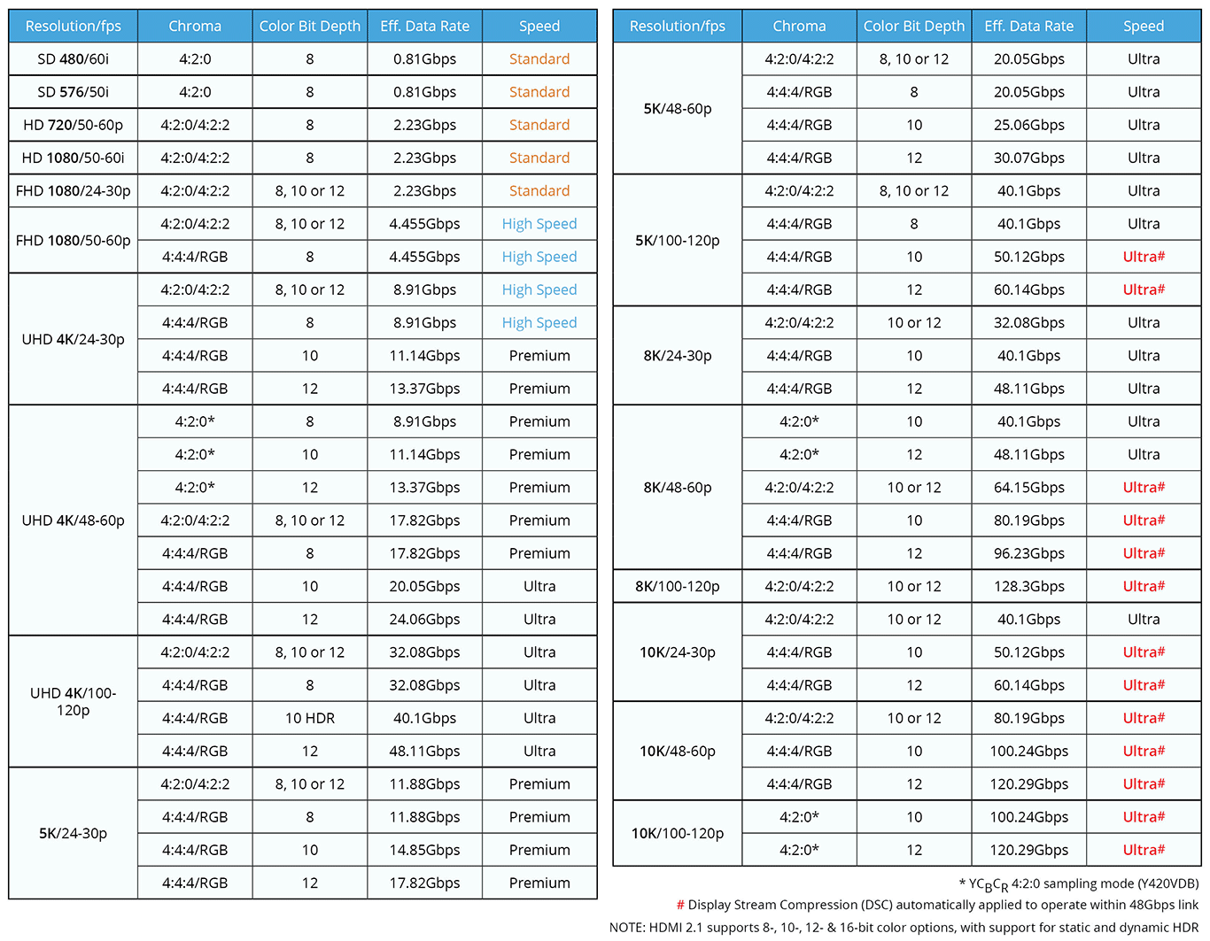 Beeet писал(а):Скоро отпадет проблема с HDMI проводами для 4К, т.к. выходит новая спецификация HDMI 2.1 и под нее делают новую спецификацию провода "48G cable". По оф. сайту это Q2-Q3 2017