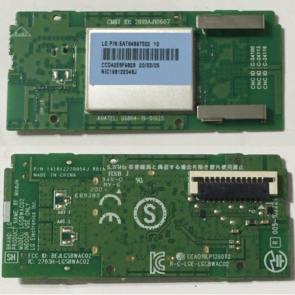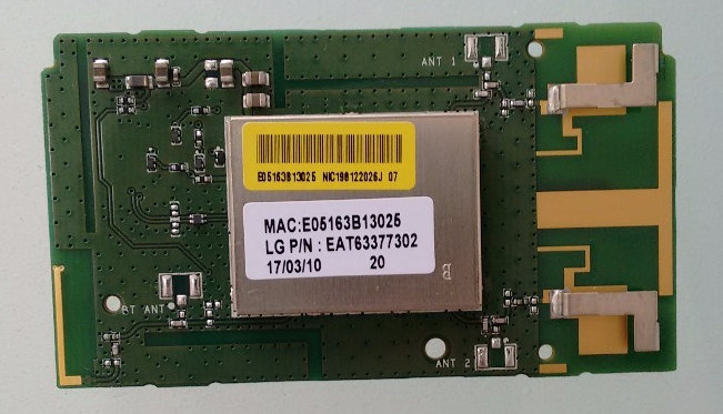 Все телевизоры LG на платформе webOS оснащены встроенными модулями беспроводной связи для подключения к домашним сетям и Интернету. Модуль представляет собой небольшую плату с радиоэлементами, обеспечивающую работу телевизора с сетями WiFi и Bluetooth-устройствами. Судя по руководствам пользователя, основными моделями беспроводных модулей являются: