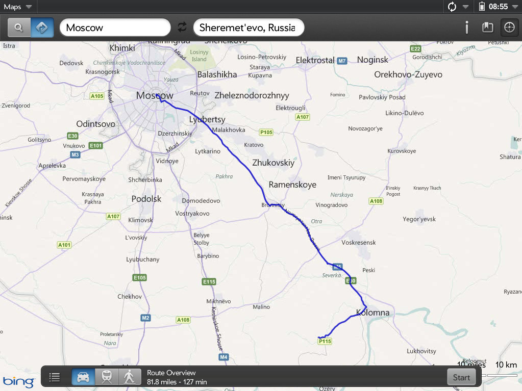 Картографическое приложение Bing откровенно разочаровало. Может для американцев это и рулез, но для России представляет минимум практического интереса. Нет пробок, русского языка, маршруты не строятся или строятся неправильно. В общем непонятно, чем им Google Maps не угодил...