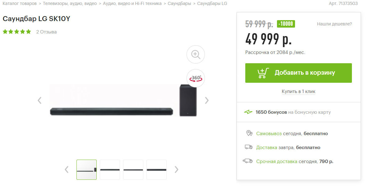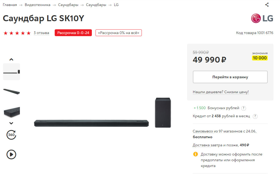 centrr7, от меня уже не будет точно - перевозвонили из DNS с вопросом, интересует ли еще доставка при условии, что это будет витринный экземпляр с явно выраженными потертостями как на самом саундбаре, так и на сабе [неприемлемо для меня, в т. ч. по обоснованным подозрениям, а не возвратный ли экземпляр