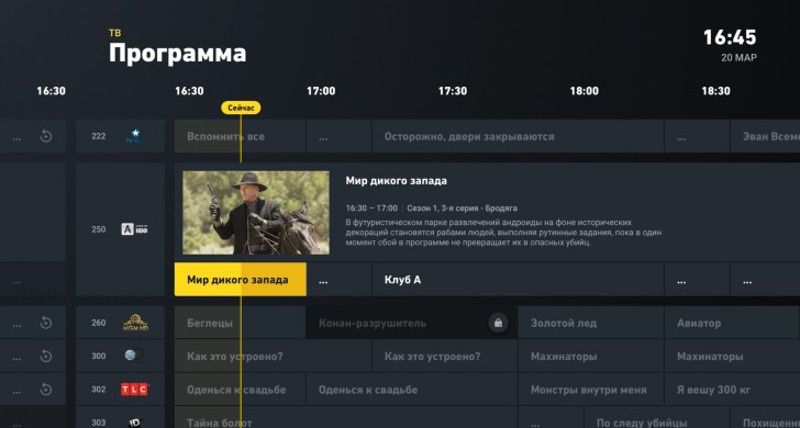 Функция отложенного просмотра — ещё одно преимущество продукта. Она позволяет продолжать просмотр программы именно с того места, на котором был остановлен просмотр на другом устройстве. Благодаря сквозному поиску по контенту в новом приложении можно выбрать наиболее удобный вариант просмотра фильма: в прямом эфире телеканала, в записи (трое суток после эфира там, где это доступно) или в каталоге фильмов.