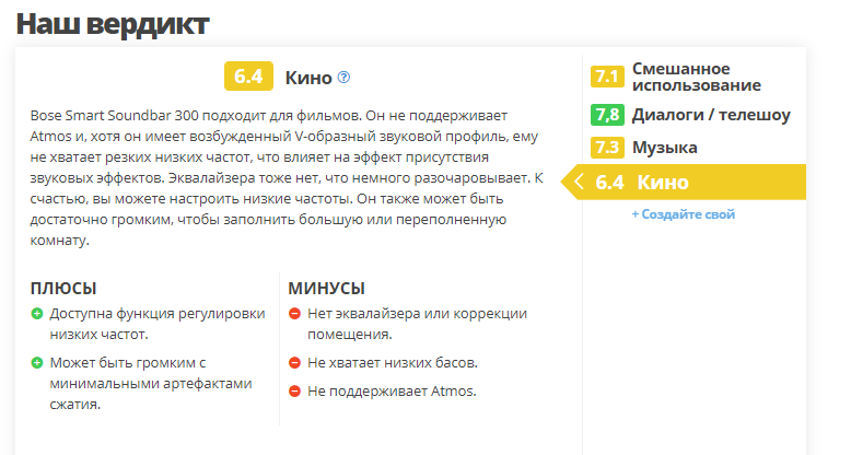 оказался далеко от вершиныnarpol писал(а):Лично под себя (свое понимание значимости параметров) сформировал таблицу по подбору саундабара для использования в системе ДК исключительно на кинематографическом контенте (Телешоу/Диалоги включено лишь как неотъемлемая составляющая в использовании, в т. ч. имеющая значение для диалогов героев в кадре, Музыка, как аспект, вообще не вносилась - не мой сценарий для музыкалки, нужны другие сетапы - ИМХО), отсортировано именно по оценке ФИЛЬМЫ (может кому пригодится) https://www.rtings.com/soundbar/tools/table/37544