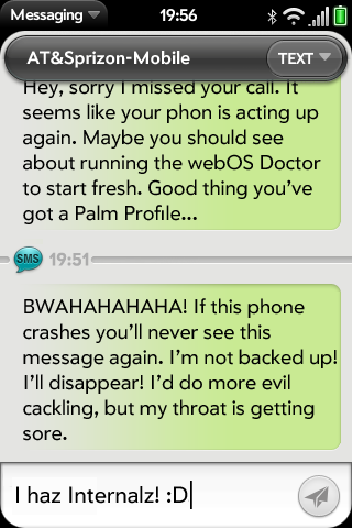 Если кому интересно, есть быстрый и простой способ сделать резервные копии истории звонков и текстовых сообщений (SMS). Хочу отметить, что это актуально для всех, так как встроенная утилита Backup указанные данные при резервном копировании на сервера Palm не сохраняет.