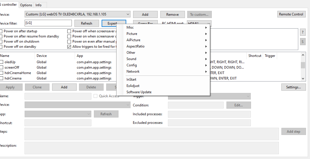 raf- писал(а):Попал в нужное сервисное меню (включив его) почти по этому способу JackSparrow @ Сервисное (инженерное) меню на телевизорах LG, только другой версией ColorControl 9.8.0.1.
