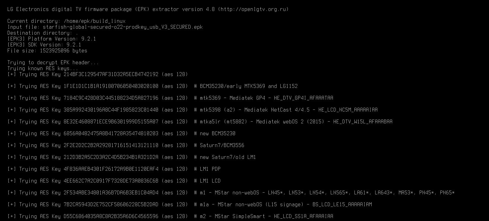 Обсуждение приложения epk2extract, предназначенного для распаковки и расшифровка файлов прошивок телевизоров LG