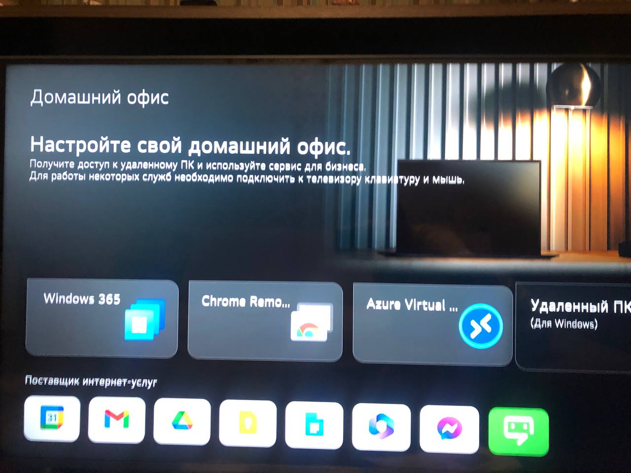 Функция "Домашний офис" (Home office) позволяет дистанционно управлять ПК с помощью телевизора.