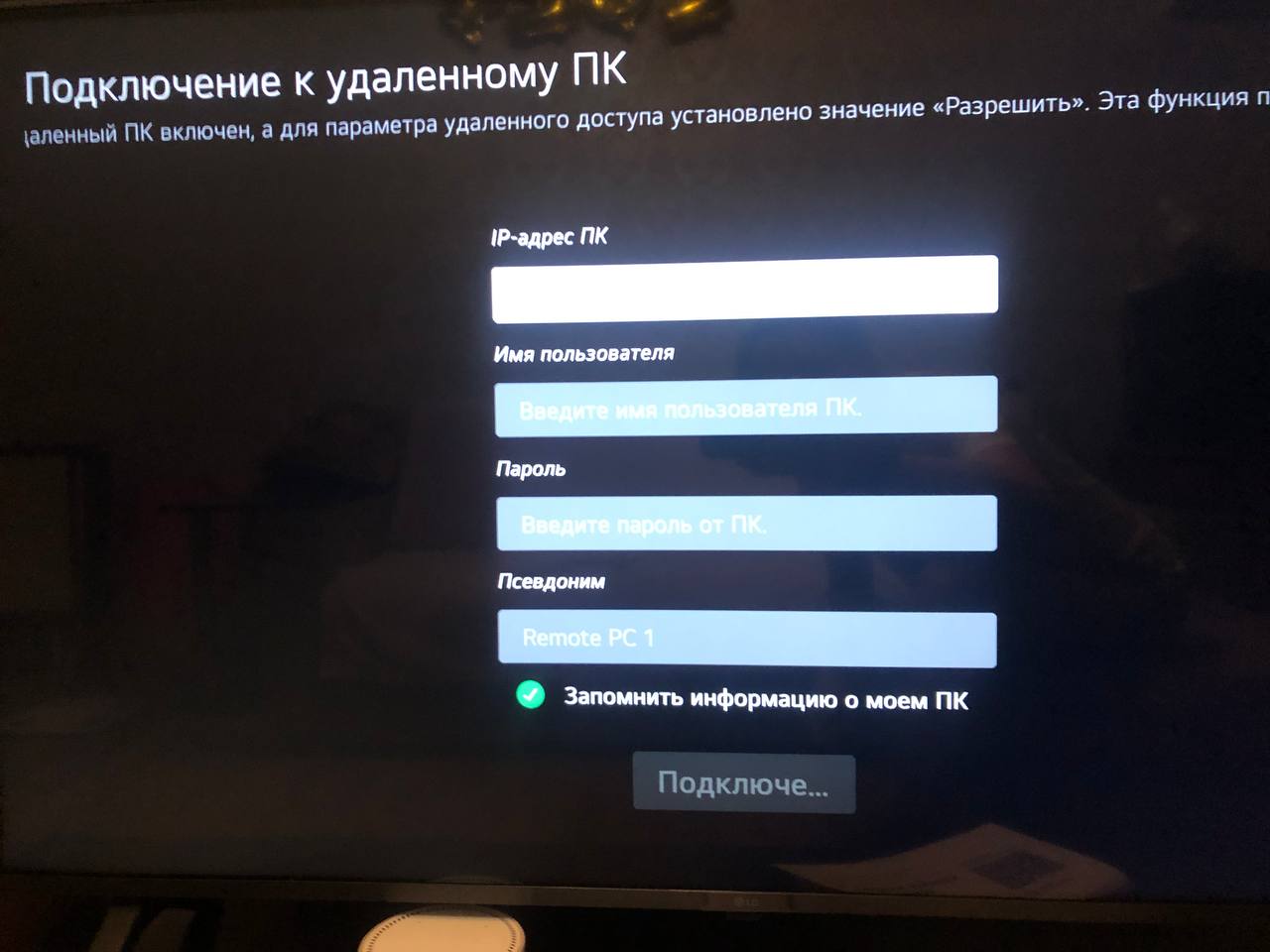 Видеоролик по настройке удаленного управления ноутбуком с помощью телевизора LG
