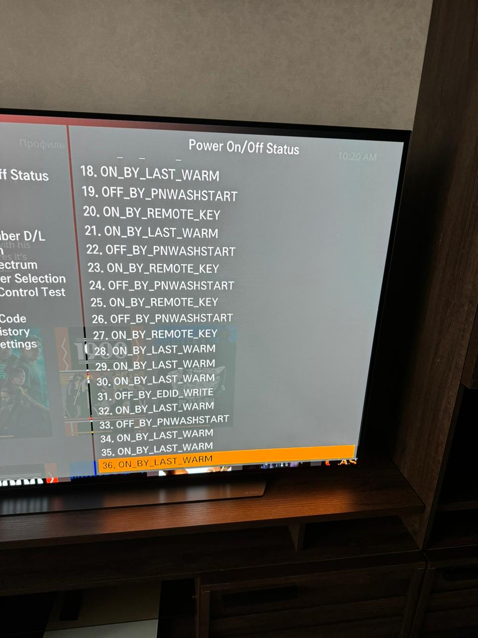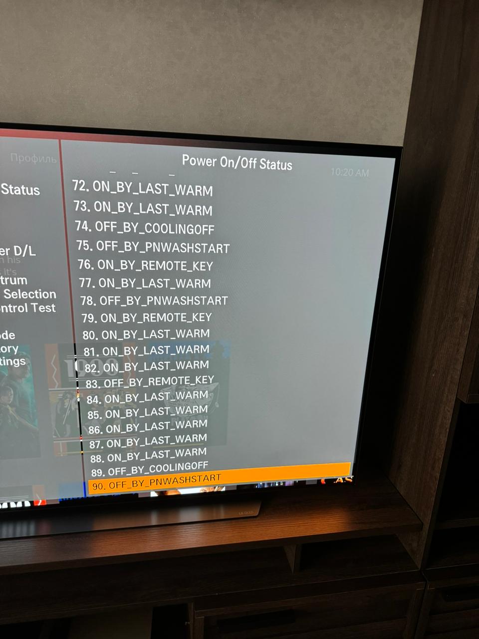 POWER_OFF_BY_COMP_END:Запись «Compensation» в Истории выключений питания указывает на то, что компенсация завершена. Компенсация запускается каждые 2 часа последовательного времени работы, когда телевизор выключен.