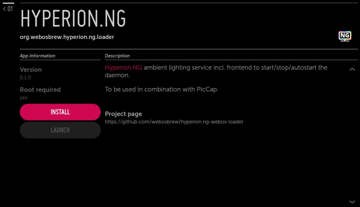 Служба окружающего освещения Hyperion.NG, включает интерфейс для запуска/остановки/автоматического запуска демона. Для использования в сочетании с PicCap.