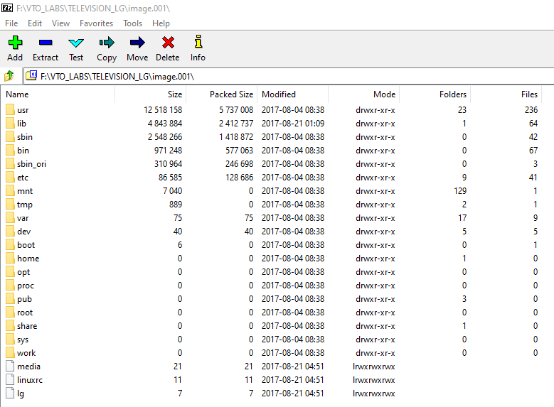 Squashfs имеет структуру папок в стиле Linux и, по-видимому, содержит файлы webOS.