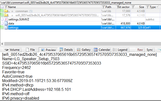 Файл "/var/lib/connman/" содержит информацию о подключении Wi-Fi.