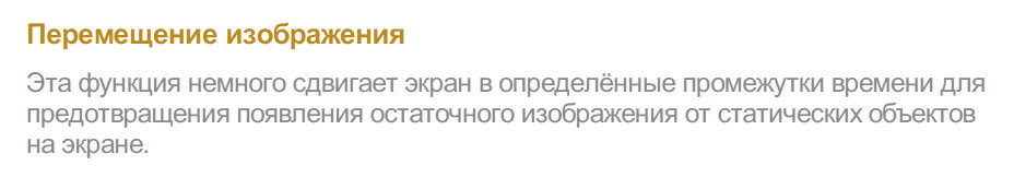 Абсолютно бесполезная функция. Которую сразу же отключил. К тому же съедающая полезную область экрана. Да и уродски ТВ смотрится с ней, когда к примеру правая часть рамки панели - кажется шире, чем левая или наоборот. Эта функция полезна только при использовании ТВ в качестве монитора или при играх, где имеются очень яркие и неподвижные тонкие вертикальные или горизонтальные линии. При обычном использовании ТВ при просмотре ТВ передач или кино - она полностью бесполезна.
