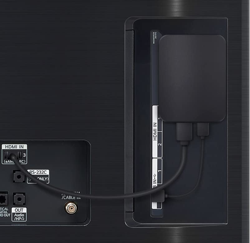 Адаптер можно подключить к любому телевизору независимо от марки, если он поддерживает HDMI ARC или eARC. Просто подключайте его к телевизору с помощью кабеля HDMI и кабеля USB, и все готово. Благодаря своему компактному размеру он идеально подходит к задней части экрана телевизора, даже если он прикреплен к стене.