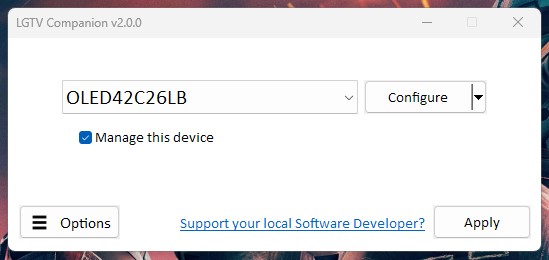 - автоматическое управление устройством webOS (телевизором), выключение и включение в ответ на выключение компьютера, перезагрузку, переход в режим низкого энергопотребления и когда пользователь бездействует, а также в ответ на изменения в топологии монитора Windows, в многомониторной среде;