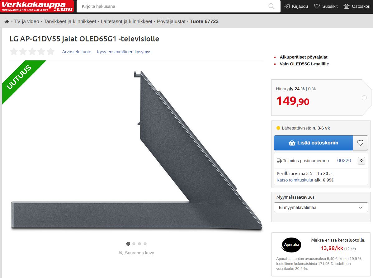 Для тех, кто не хочет вешать этот телевизор на стену, компания LG предлагает специальную стойку под названием Gallery Stand.