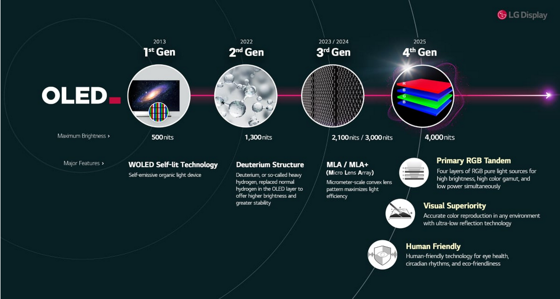На CES 2025 LG и Panasonic представили новые модели, такие как LG OLED G5 и Panasonic Z95B, которые не используют технологию MLA. Причина этого кроется в обновлении конструкции панелей. Ранее OLED-пиксели LG использовали два слоя синего цвета и один слой, содержащий красный, зеленый и желтый цвета. Однако новые OLED-панели имеют четырехслойную конструкцию, состоящую из двух темно-синих, одного красного и одного зеленого слоя. Это позволяет добиться более ярких и насыщенных цветов, а также повышает яркость до 4000 нит.