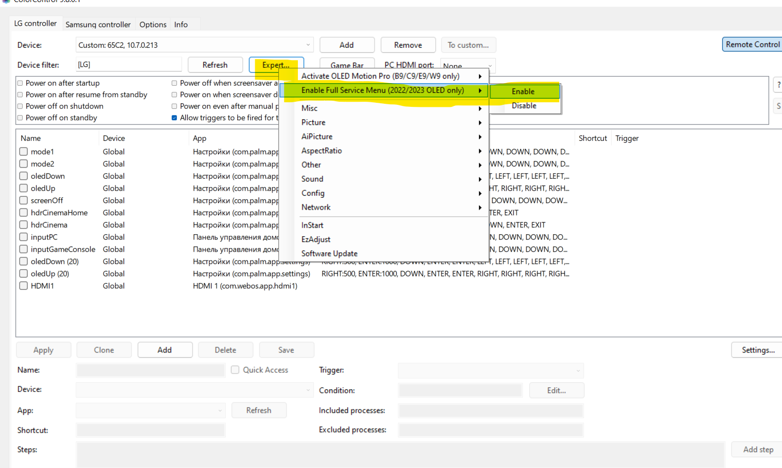 Но..... все решается через ColorControl версии 9.8.0.1 путем активации Full Service Menu