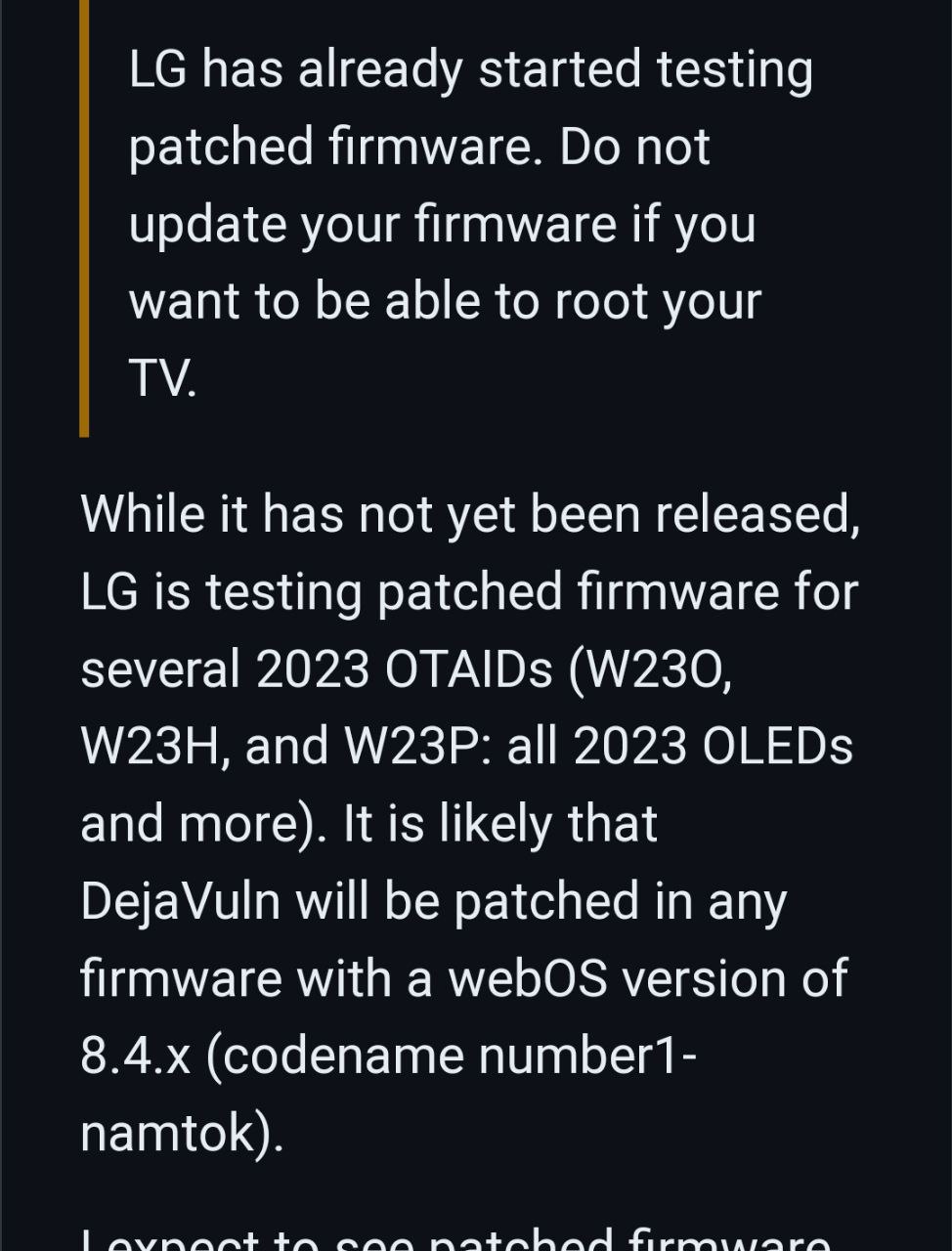 JackSparrow писал(а):У корейцев на сайте появилась новая глобальная прошивка 03.31.45 для моделей LG OLED C3, G3