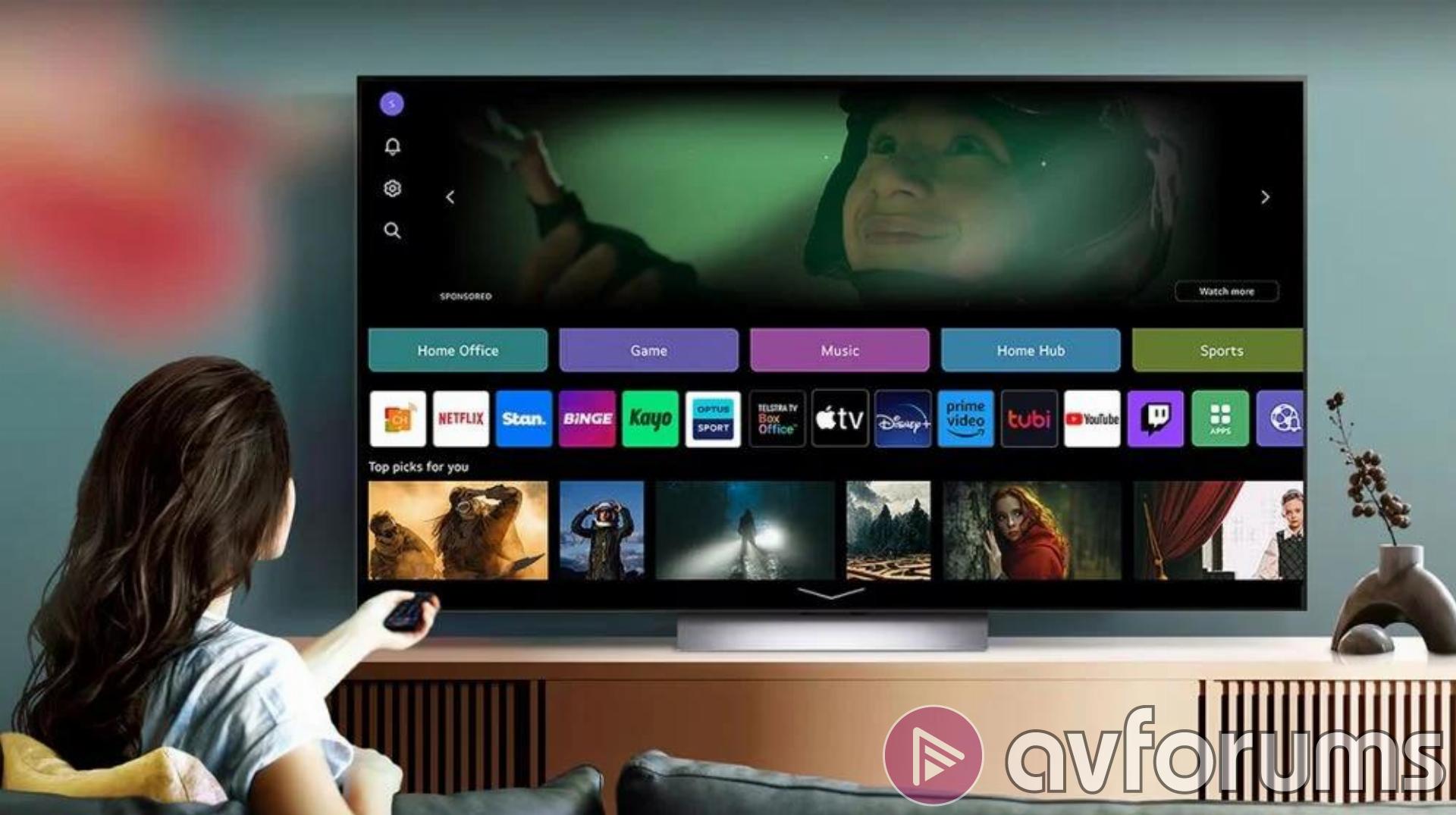 Интерфейс не претерпел значительных изменений, а большая панель контента в верхней части по-прежнему служит в основном в качестве рекламного окна для приложений или продвигаемого контента. webOS обеспечивает доступ ко всем популярным потоковым сервисам, а если на вашем телефоне нет какого-либо сервиса, вы можете подключить его через AirPlay 2 и Google Cast (Chromecast). Последняя была добавлена во время нашего обзора и является новой функцией для 2024 года (в моделях 2023 года она появится позже, через обновление webOS).