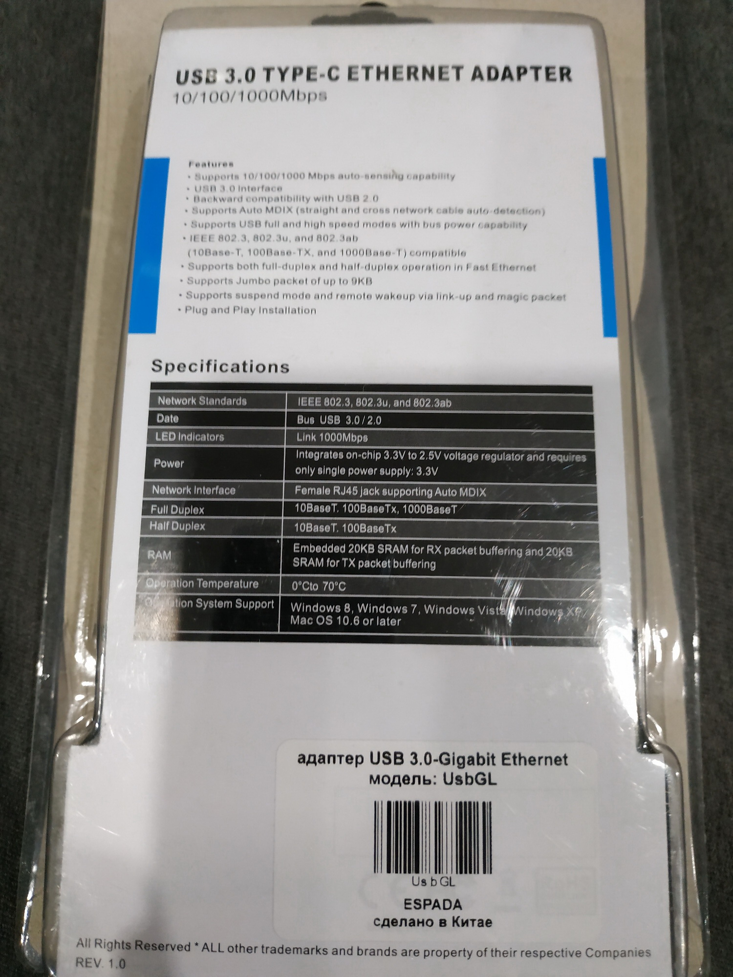 Re: Сетевой LAN-адаптер Gigabit Ethernet (GbE) в формате USB