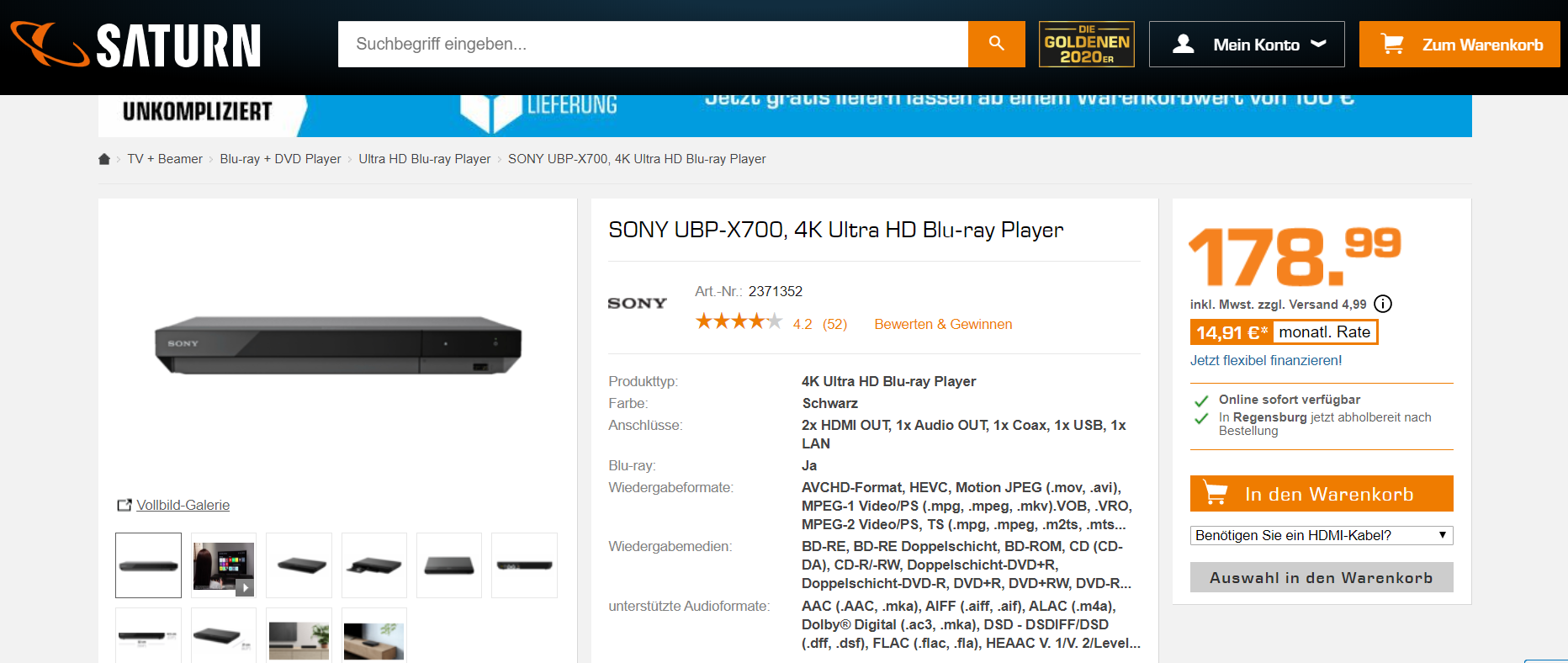 Отзыв на Ultra HD Blu-ray-плеер Sony UBP-X700