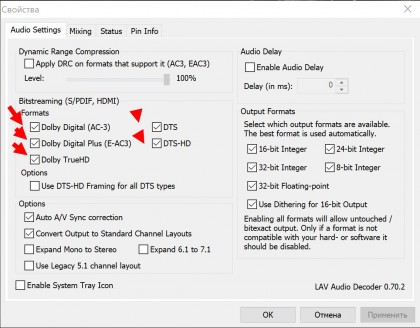 Вывод звука в формате Dolby Atmos (Dolby TrueHD)
