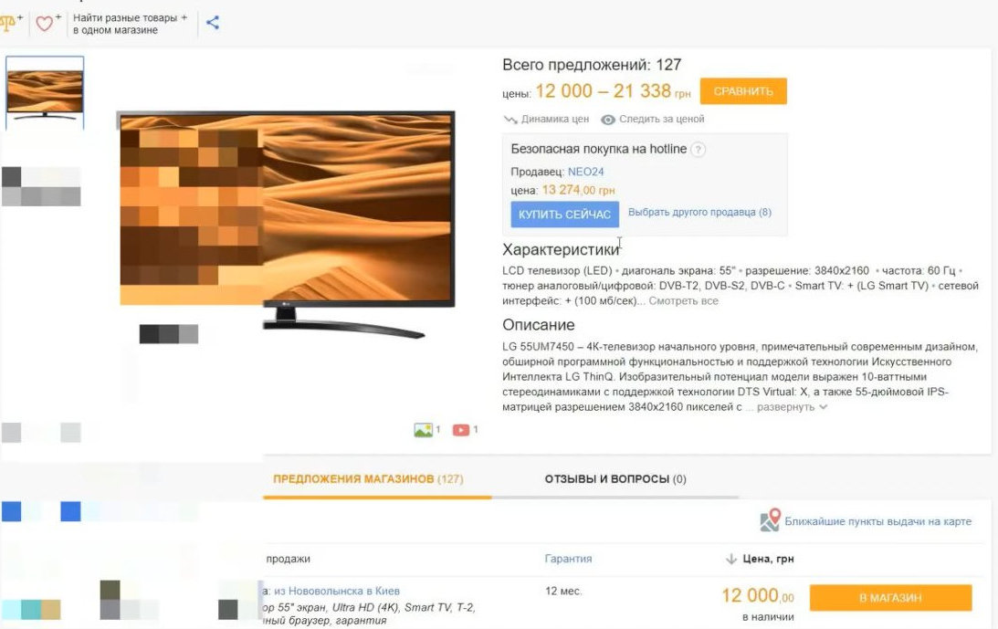 Итак, чаще всего перед покупкой потенциальный покупатель подбирает телевизор через интернет-сервисы сравнения цен, например price.ua. Фильтруя предложения по цене, он выбирает продавца с самой низкой ценой на интересующую модель и делает у него заказ.