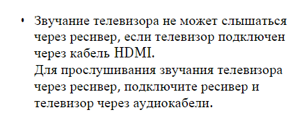 Ну какую-то Инструкцию по эксплуатации нашел, но без упоминания в ней возможностей по ARC, точнее нашел об отсутствии такой возможностиЕще вспомнил, что только PCM уходит на оптику, если включен одновременный вывод звука на динамики ТВ и на нее.В точку. Нет там ARC. Инструкций на модель толком нет даже.