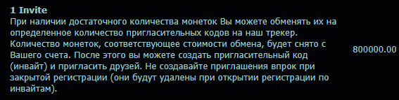 Просто пригласить ну совсем нереально (по мне) за виртуальные монетки, вроде не привык с раздач быстро сваливать (да и не выйдет там быстро сваливать: мигом влепят предупреждение-другое и в вечный бан) - минимум пару-тройку дней всегда висит круглосуточно после скачивания, но у меня на порядок меньше (правда на оплату раздач, что изредка там забираю, вполне хватает имеющихся виртуалок).