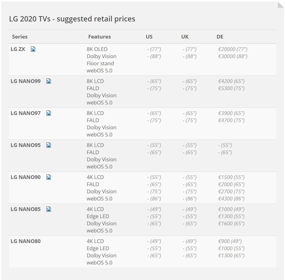 LG сообщает о ценах в ЕС на 2020 8К OLED и ЖК телевизоры 2020 года
