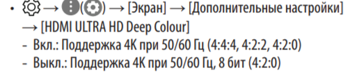 [Settings] ? [Picture] ? [Additional Settings] ? [HDMI Ultra HD Deep Color]