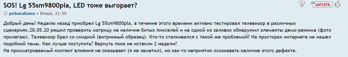 Нет, это на OLEDах предусмотрено, где органика.valentin001 писал(а):Прочёл, что есть внутренняя программа в телевизоре. Для исправления вышеуказанных проблем.