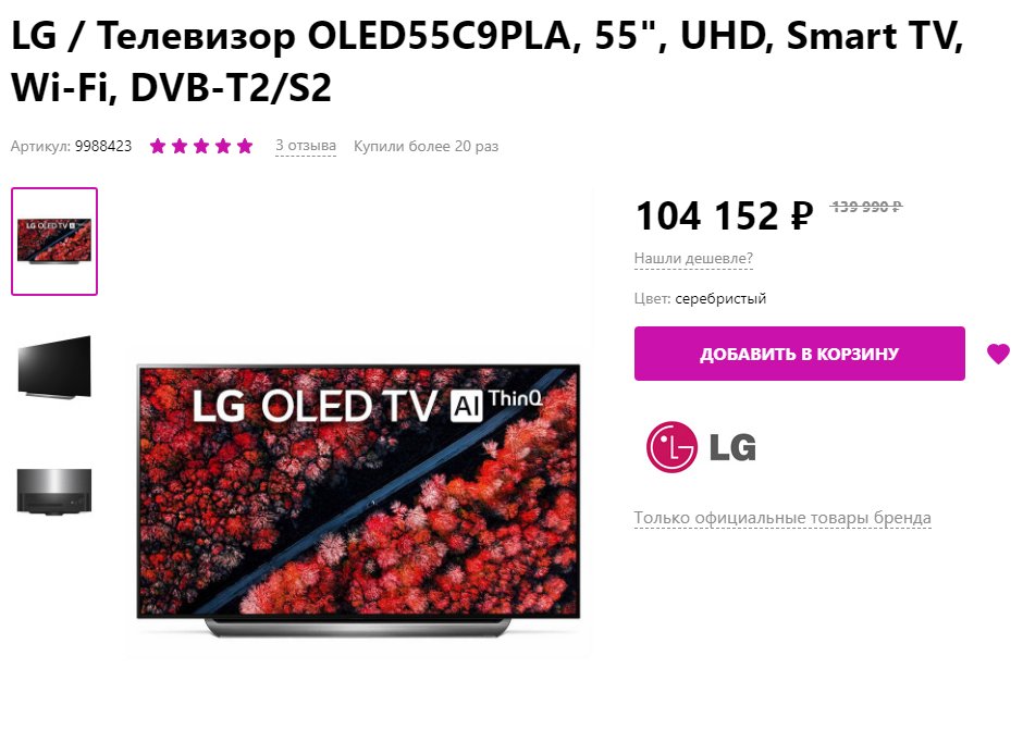 AceSpace писал(а):Посмотрел на курс и таки тоже купил 65C9 офф поставки за 141к (связываться с серовозами не решился за такую цену), картинка конечно просто космос играю в ps4 pro и это прям нечто, я конечно ожидал вау эффект но не настолько. Из минусов самостоятельно собрать не получилось пришлось звать друга, так как оказался он тяжеловат при подъеме для меня.