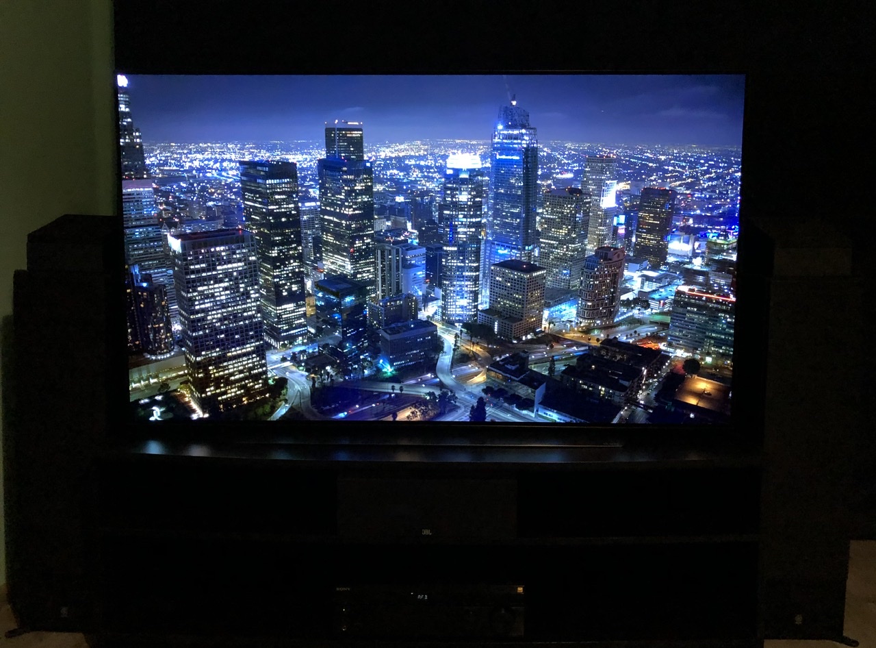 65 дюймов это конечно величие, с 4 метров кажется огромным! Картинка - вышка, звук самого ТВ не слушал, сразу же подключил в HDMI ARC ресивер. Остальные устройства (PS4, Apple TV 4K, ПК) также подключил хорошими 18Гб/с HDMI кабелями. Сразу же словил небольшой глюк: не работало управление по HDMI пультом ТВ Apple TV, Simplink активирован, все галочки стоят, устройства одновременно включаются/выключаются, но пульт не работает. Помогло вытащить/вставить кабель HDMI при включенных устройствах - тут же подхватился пульт и стало можно управлять устройствами одним пультом от ТВ.